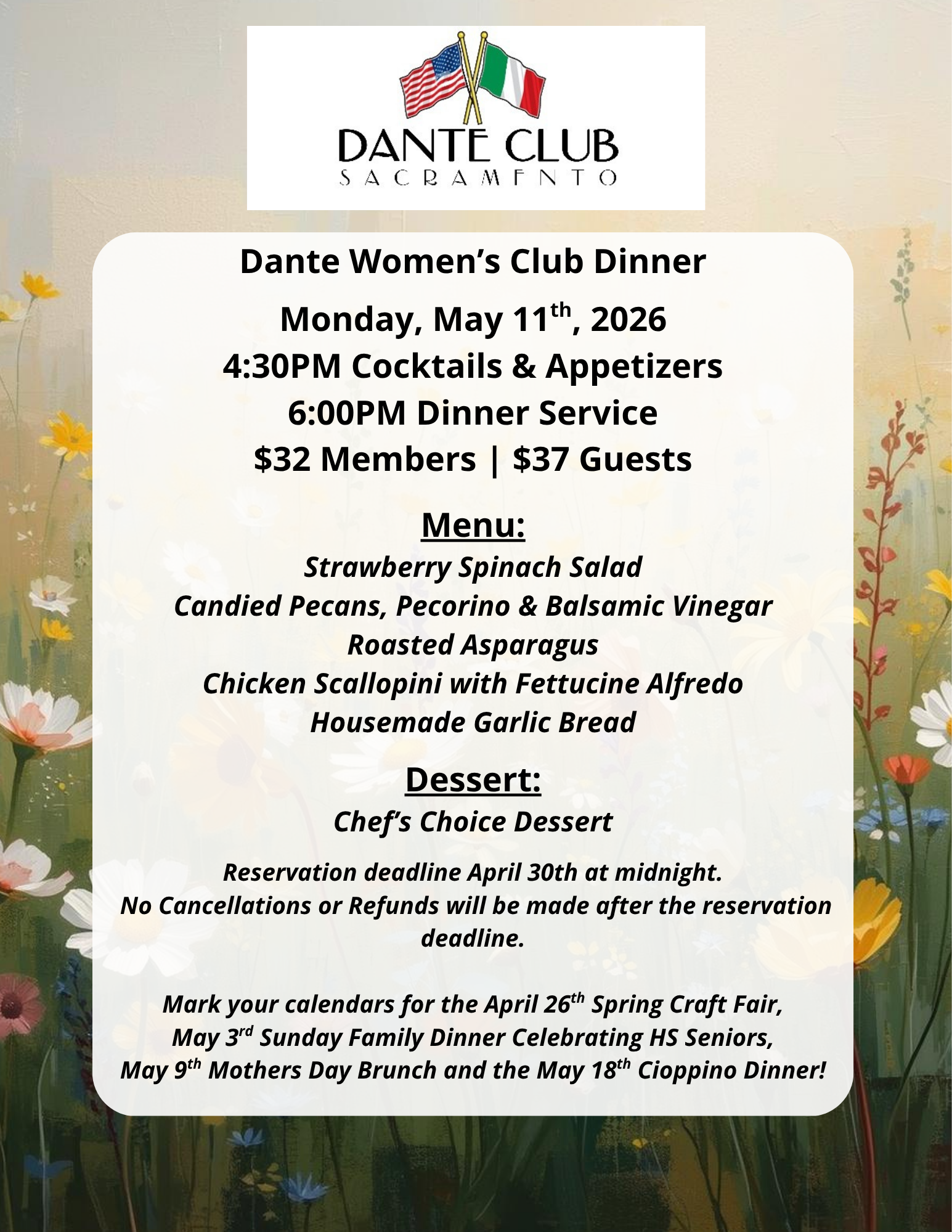 Reservations deadline is April 30th at midnight. No Cancellations or Refunds will be made after the reservation deadline. Refunds must be requested by original purchaser.