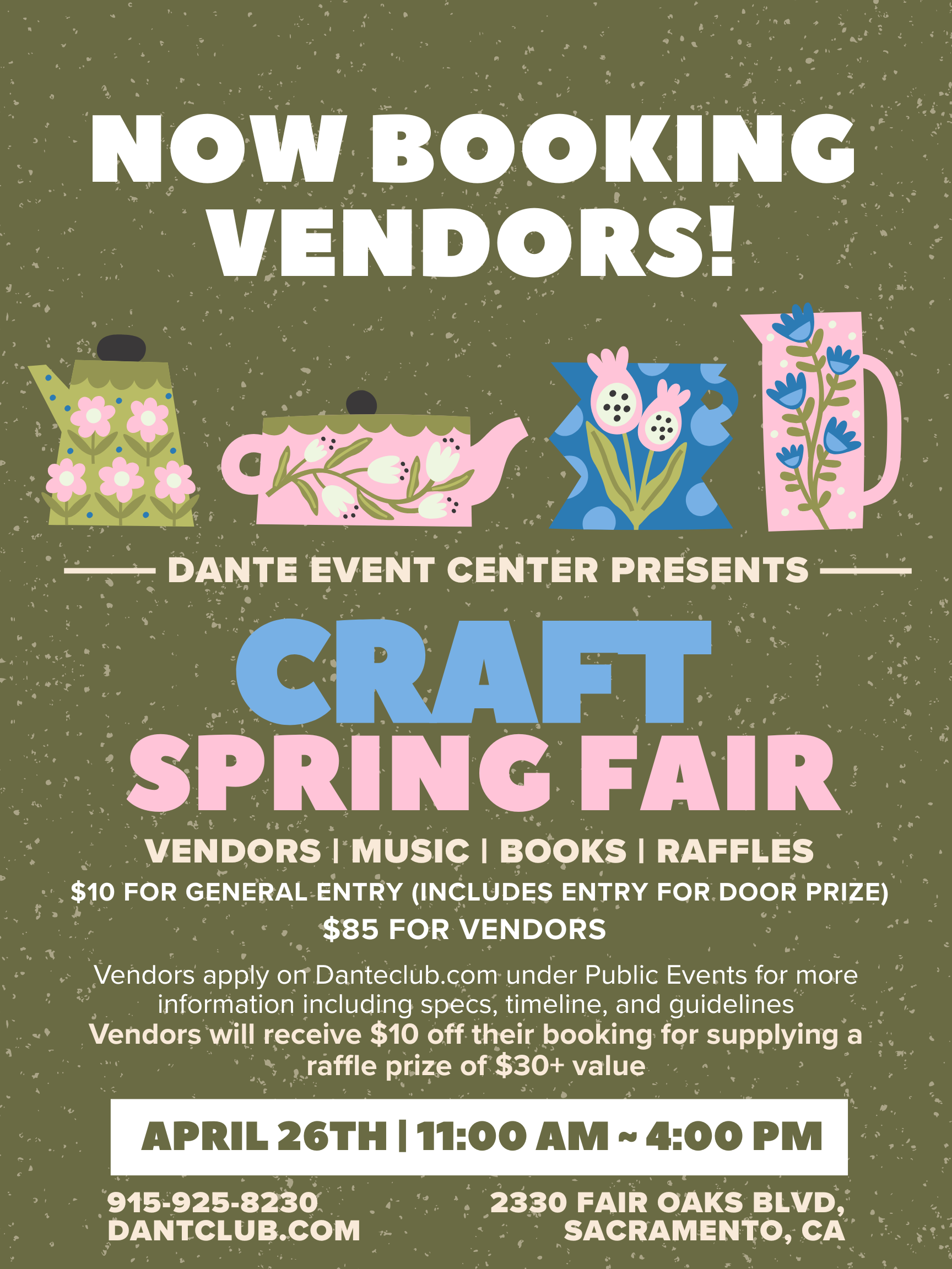Vendors may receive $10 off the vendor fee by donating a raffle prize with a minimum value of $30. We will create professional display cards for each raffle basket so guests can learn more about your business—an excellent marketing opportunity. Raffle baskets must be complete and ready at drop-off. Vendors will receive the $10 credit at the time of basket drop-off. Raffle item drop-off deadline: April 25, 2026.