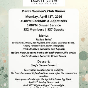 Dante Club Men’s Meeting & Dinner – 2026 Annual Payment